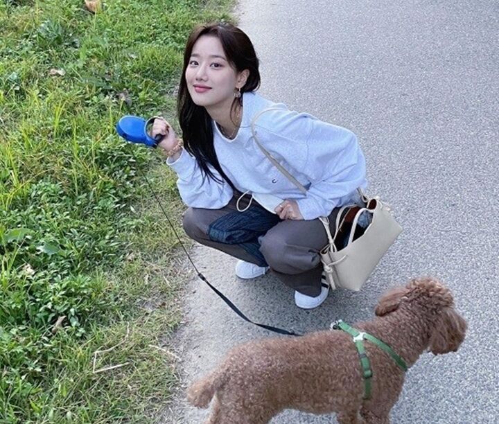이날 전수민은 퍼프 소매의 A라인 드레스를 선택했다. 여기에 비즈가 수놓여 화려한 느낌을 더했다.