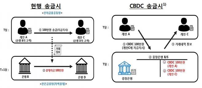 윤성관 한은 디지털화폐연구팀장은 "컴퓨터 가상환경에서 CBDC의 제조, 발행, 유통, 환수 등 중앙은행의 업무가 제대로 작동하는 지 확인하는 모의실험을 할 예정"이라며 "이후에는 다른 금융기관이나 IT업체들과 함께 유통과정에서의 송금, 대금결제 등 서비스 프로세스를 실험할 것"이라고 밝혔다.