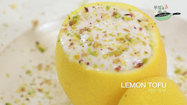 레몬으로 만드는 마지막 요리는 ‘레몬 두부’입니다. 비주얼이 엄청나죠? 뉴욕의 미쉐린 3스타 ‘장 조지’의 레스토랑에서 에피타이저로 제공하는 요리인데요. 보기만 해도 상큼해지는 것 같지 않나요?