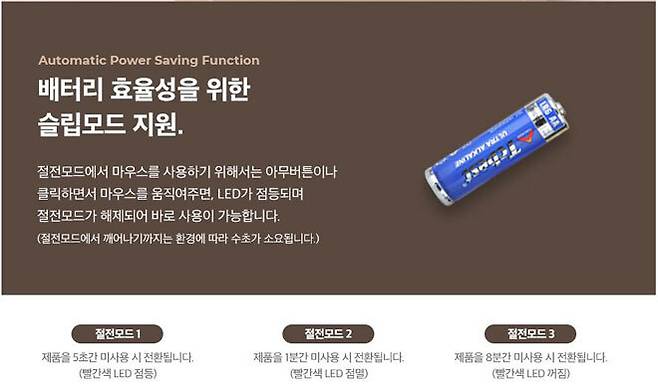 또, 배터리 효율을 위한 3단계의 절전모드가 제공된다. 5초 미사용시 1단계, 1분 미사용시 2단계, 8분간 미사용시 슬립모드로 전환된다.