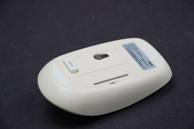 바닥면에는 옵티컬 광센서 부위와 건전지 장착부, 그리고 무선 키보드 마우스 동시에 활용할 수 있는 수신부 USB를 수납할 수 있는 공간도 마련되어 있다.