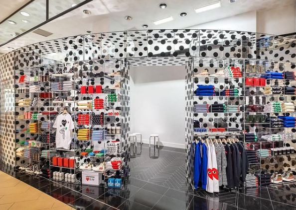 꼼데가르송의 아이코닉한 로고가 프린트돼