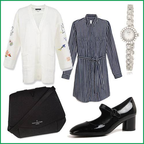 발목에는 메리제인 구두로 여성스럽게 코디해서