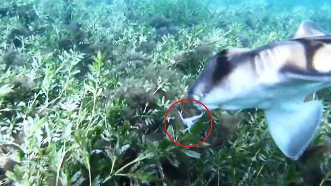 아기 상어는 마치 고마운 마음을 표현하기라도 하는 듯 한동안 주변을 맴돌다가 사라졌다고 합니다.