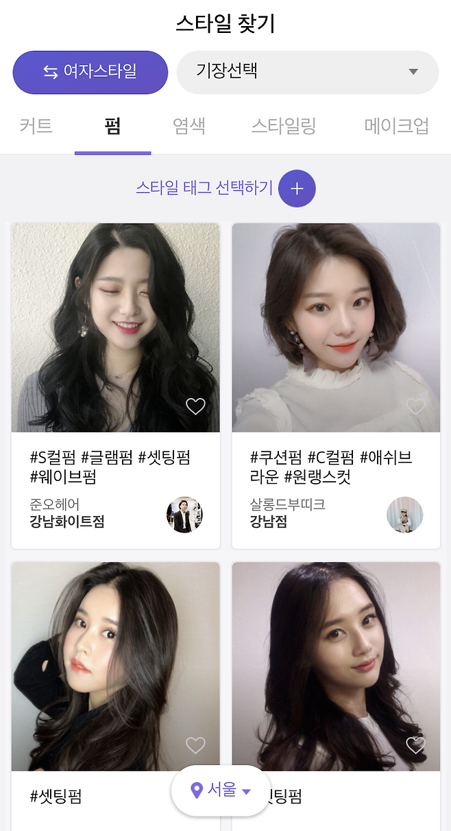 원하는 헤어스타일 검색하고