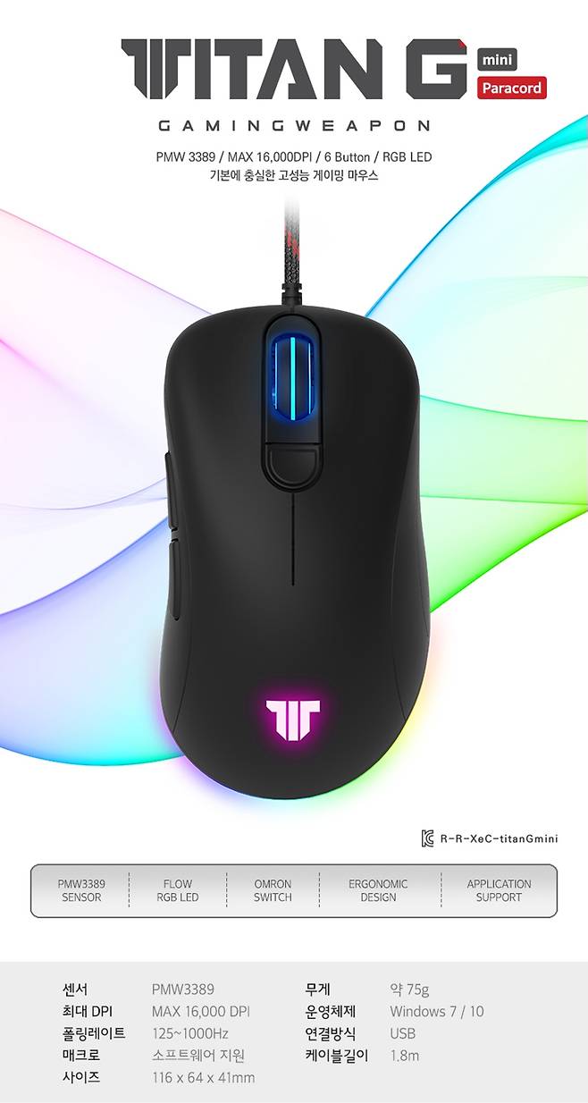 물론 지난 2월에 출시된 TITAN G 모델의 출시가보다 조금 더 비싼 편이고, 옵티컬 센서의 스펙은 낮아도 가격대 성능비로는 TITAN G LT가 높은 효율을 보이긴 하지만... 패브릭 소재의 부드러운 파라코드 케이블이 기본 적용되어 있고 TITAN G 모델에 비해 다운그레이드된 부분이 전혀 없기 때문에, 손 크기가 F11 미만이고 기존의 뻣뻣한 케이블이 불편했던 게이머라면 가장 높은 만족감을 얻을 수 있는 제품이겠으며, 최대 16,000 DPI를 지원하는 PMW3389 센서가 탑재되어 있으므로 4K 해상도 환경에서 작업하는 사용자에게도 좋은 활용도를 보이겠습니다.