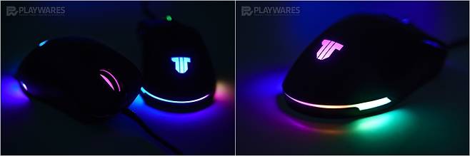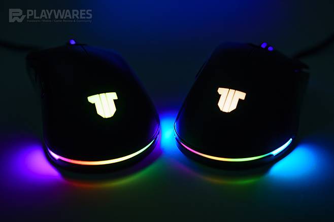 옵티컬 센서로는 최대 16,000 DPI를 지원하는 PMW3389 센서를 탑재했고 125~1000Hz의 폴링레이트, 마우스의 다양한 기능을 조절/제어할 수 있는 소프트웨어가 지원되며 어느 정도 제어가 가능한 FLOW RGB LED 역시 동일하게 적용되어 있습니다. 또한 TITAN G LT 모델에서는 빠졌던 커스텀 DPI 버튼도 제공되는데, 기본 장착된 블랙 버튼 외에 높낮이가 다른 블랙 버튼 1개 및 레드 버튼 2개가 마련되어 있어 사용자의 취향에 맞는 커스텀이 가능하겠습니다.