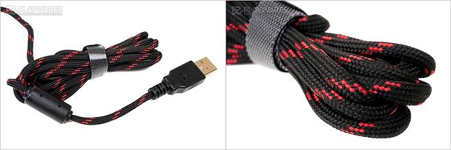 기존 TITAN G 모델과 차별점을 두는 것은 패브릭 소재의 파라코드를 적용헀다는 것입니다. 기존 TITAN G 모델의 케이블은 패브릭 소재이긴 하나 강성이 있고 TITAN G LT 모델의 케이블은 일반적인 고무 소재였던 반면, TITAN G MINI의 케이블은 기존 모델들에 비하면 강성이 거의 없다시피 할 정도로 부드럽습니다. 멋대로 방향이 꺾이고 잘 펴지지도 않는 타 케이블에 불편함을 느꼈던 사용자에게는 TITAN G MINI의 파라코드 역시 큰 장점으로 여겨질 수 있겠습니다.
