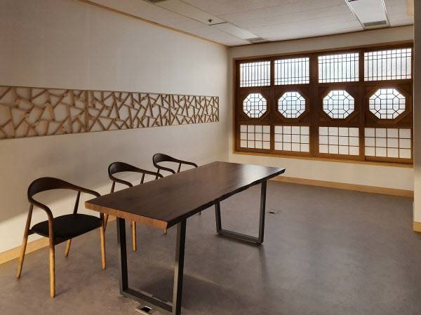 “모객력이 중요한 상가는 주거 공간보다 좀 더 화려한 요소를 가미해야 한다. 충남 아산에 있는 ‘좋은아침패스츄리 카페’ 건물 2층이 대표 사례다. 아파트 인테리어와 달리 한옥 외부에서 볼 수 있는 담장이나 기와를 설치해, 고객들이 직접 한옥미를 느낄 수 있도록 했다. 오피스나 관공서 등 업무공간은 최대한 차분한 느낌으로 인테리어하는 것이 좋다. 창문에 한식 창호를 설치하고, 스피커 같은 요소를 나무로 짠 틀로 싸놓는 등 최소한으로 깔끔하게 꾸민다.”