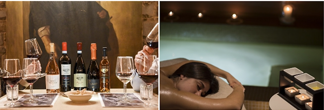 이 호텔의 가장 매력적인 점은 신선한 와인을 종류별로 맛볼 수 있다는 것이다. 와인 창고에 들어서는 순간 1700년대로 거슬러 올라가는 느낌을 만끽할 것이다. 투숙객을 대상으로 한 '주피터의 눈물' 체험을 신청하면 각각 다른 와인 제조 기술을 사용하여 만든 5개의 와인을 맛볼 수 있다. 신선한 치즈와 비스킷, 유기농 꿀, 잼 등의 간식이 안주로 나온다. '와인 테이스팅&스파' 체험은 마사지와 와인 시음을 동시에 즐기는 체험이다. 약 30분가량 마사지를 받으면서 라멜, 피안 디 노바, 폴리세나, 보로 와인을 플래터와 함께 맛볼 수 있다.