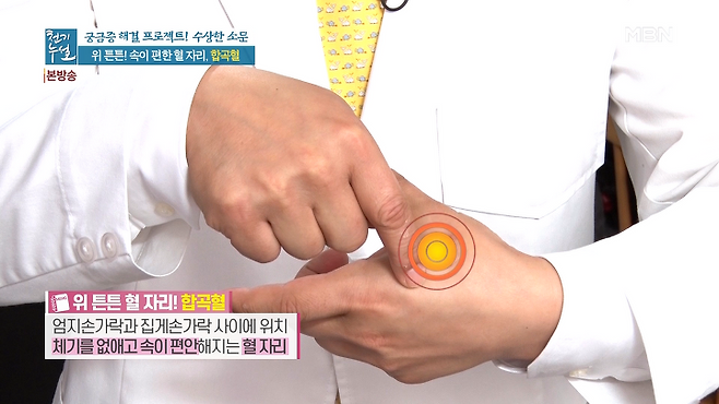 합곡혈은 엄지손가락과 집게손가락 사이에 위치한 곳으로,