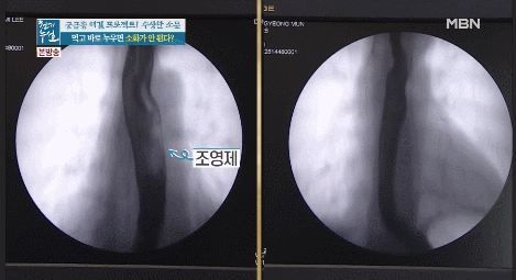 소화가 덜 된 조영제가 꽤나 남아 있네요.