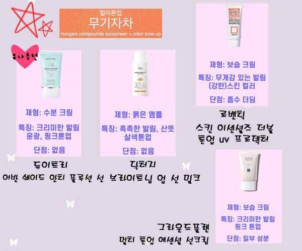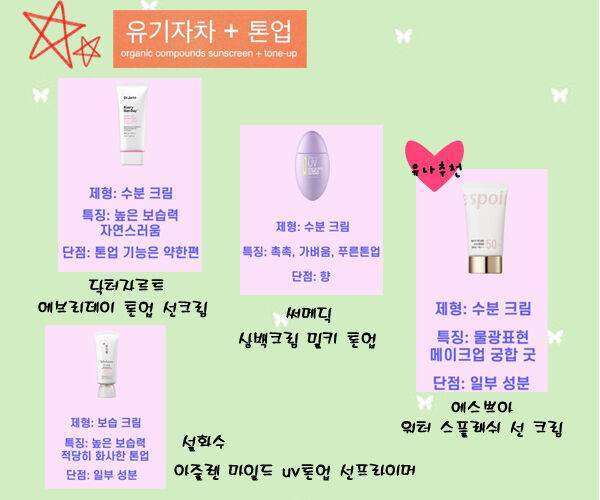 유기자차+톤업 5가지 타입별로