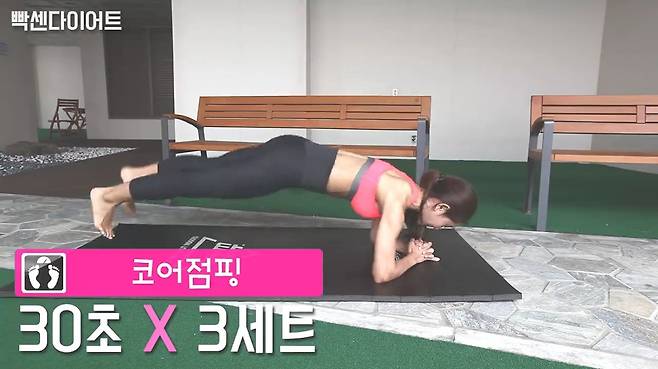 무릎을 바닥에 대고 푸쉬업을 한 다음에