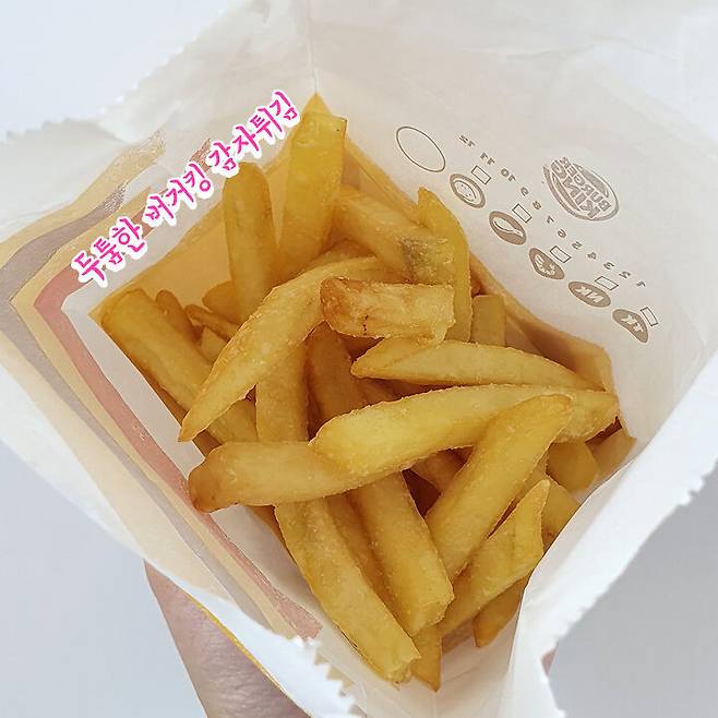 다른 패스트푸드점보다 버거킹 감자튀김이 약간 더 두툼하죠!? 개인적으로 두툼한 감자튀김을 선호해서 롯데리아의 양념 감자보다 더 좋았어요.