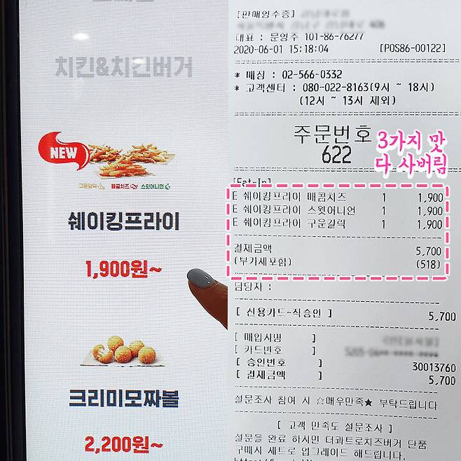 와퍼 맛집 버거킹 버전의 양념 감자가 새롭게 출시되었어요. 이름은 쉐이킹 프라이! 롯데리아의 양념 감자는 치즈&칠리&어니언 3가지인데, 버거킹은 매콤 치즈 & 구운 갈릭 & 스윗 어니언 맛이 있네요. 구운 마늘 맛이라니 새로워요!