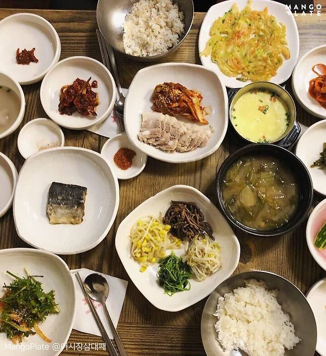 기본찬으로 소불고기가 제공되고 여기에 계란찜, 나물, 생선구이, 보쌈 등등! 나물을 밥 위에 덜어 고추장과 참기름을 넣어 맛있게 비벼 드시면 된답니다. 여행 중 든든한 백반 정식이 먹고 싶을 때, 벽오동도 좋은 선택지가 될 거 같네요!