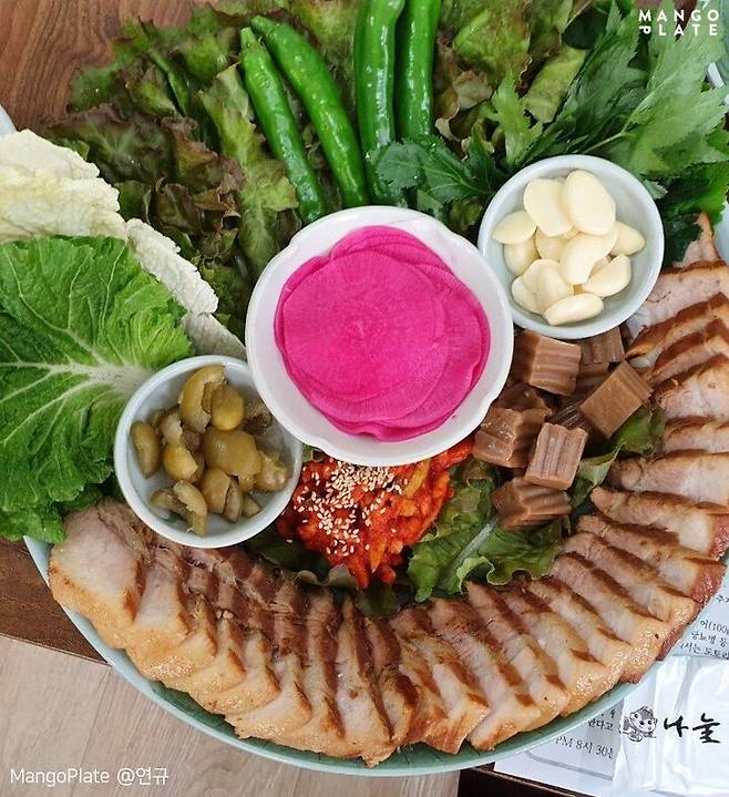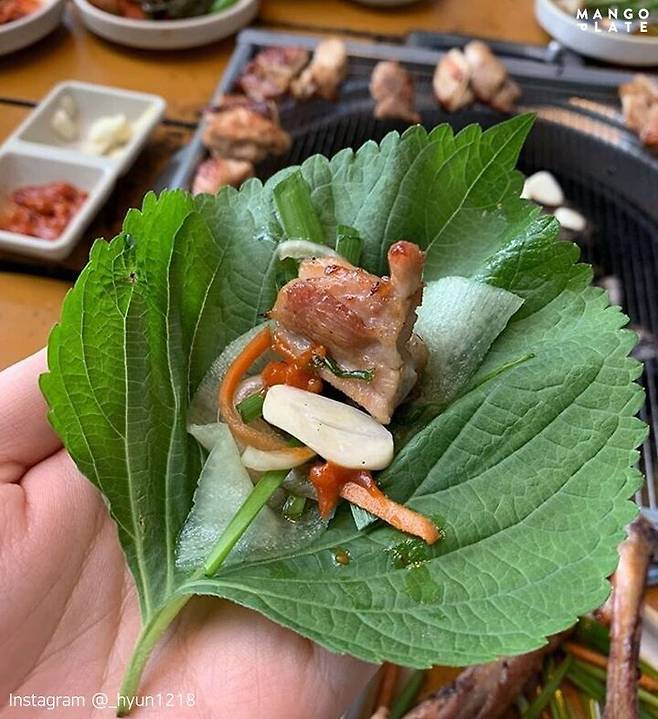 꺳잎에 무쌈을 올려 닭구이와 마늘, 부추를 올려 한 입에 먹어주면 이거야 말로 여행의 묘미 아니겠어요? 순천에서 이색적인 분위기의 맛집을 찾고 계셨다면 이곳을 추천해요!