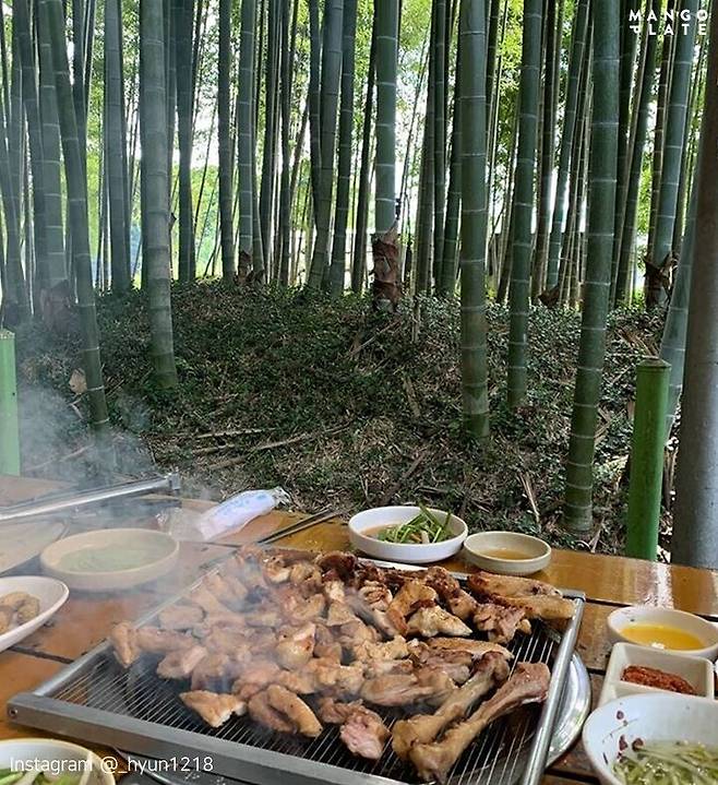울창한 대나무 숲에서 구이 요리를 먹을 수 있는 <대숲골 농원>을 소개해요. 풍경이 좋아 맛까지 더 좋을 거 같은 이곳! 실내 자리도 마련되어 있지만 대나무 숲에서 먹는 닭구이 맛은 상상만 해도 꿀맛일 거 같아요.