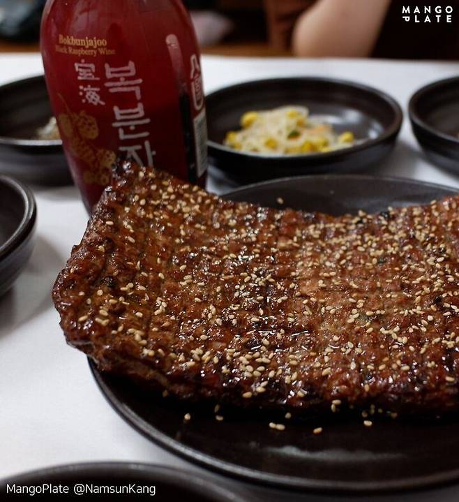 정식이기에 떡갈비를 주문하면 이렇게 수많은 반찬을 맛볼 수 있답니다. 촉촉하면서 쫀득한 식감이 매력적인 떡갈비. 떡갈비 자체만으로 즐겨 드셔도 좋고, 밥 위에 한 점 올려 먹어도 좋아요.