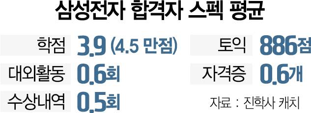 첫번째 순서는 삼성전자다. 서울경제와 진학사 캐치는 지난해 삼성전자 신입공채에 합격한 25명에게 합격 스펙과 노하우를 물어봤다. 조사는 일부 합격자를 대상으로 이루어진만큼 취업 준비에 참고만 하길 권장한다. 합격자들은 별도의 합격 인증 절차를 거쳐 인터뷰에 참여했다.