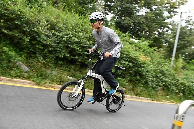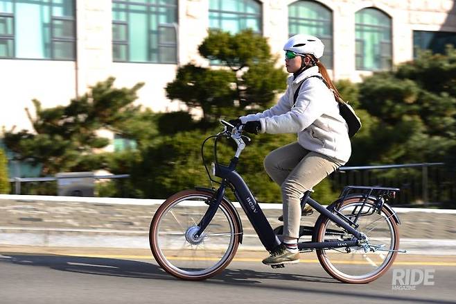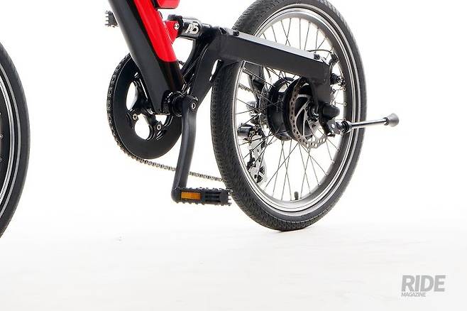 자전거가 스포티하다. Y자 형태의 프레임, 프레임과 한 몸처럼 보이는 배터리가 눈에 띈다. 20인치 휠세트로 조작성이 뛰어나고, 앞뒤로 서스펜션이 장착됐다. 승차감이 좋고, 앞뒤로 장착된 기계식 디스크 브레이크는 노면 상황의 영향을 덜 받고 비가 오는 날이나 다소 거친 길을 달릴 때도 안정적인 제동력을 제공한다.