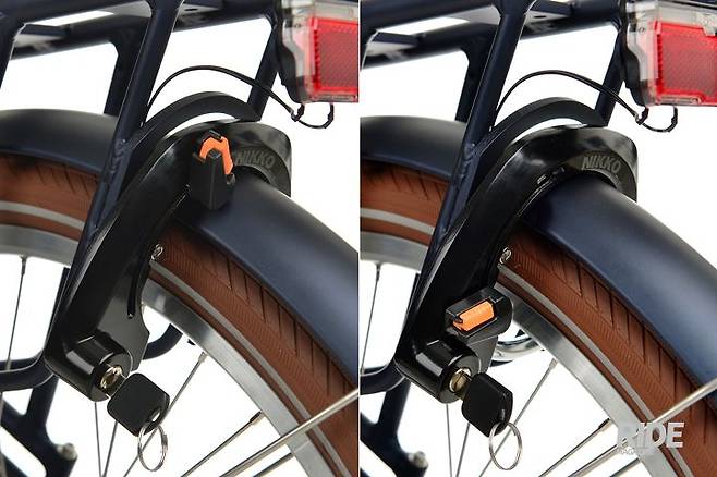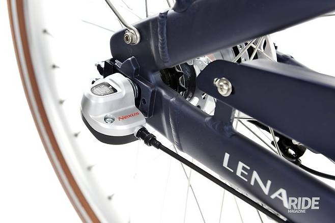 시마노 넥서스 3단 내장기어가 장착되었다. 기어가 겉으로 드러나지 않아 내구성이 높고 정비주기도 길다. 잠금장치는 짐받이 쪽에 통합되어있어 깔끔하다. 잠금장치를 챙기지 않아 당황할 일이 없다. 열쇠도 확인할 필요가 없다. 열린 상태에서는 자물쇠에서 열쇠가 빠지지 않는다.