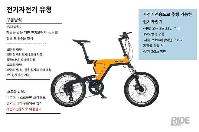 3월 22일 시행되는 자전거법에 따르면 BESV PSA1과 CF1 LENA는 자전거도로를 이용할 수 있는 전기자전거다. 똑똑하게 전기자전거를 골라, 자전거도로를 합법적으로 이용하자. 더 자세한 내용은 kr.besv.com 에서 확인 가능하다.