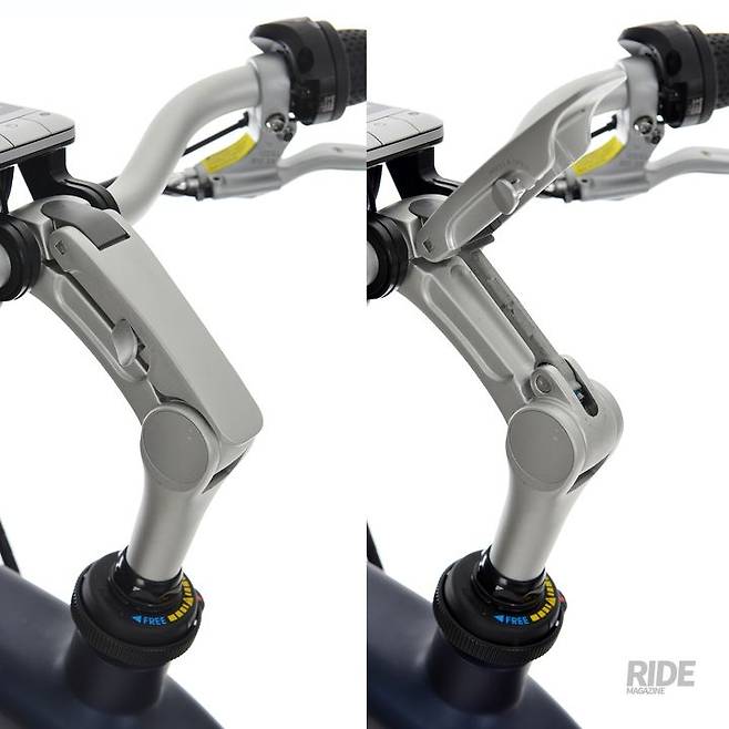 프레임 형태는 L형 디자인으로 치마를 입고서도 라이딩이 가능하다. 핸들바 위치 조절이 쉬운 스템이 달렸고, QR식 시트포스트 고정 장치 덕분에 안장 높이조절이 편리하다.