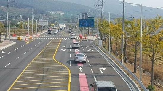 '양보'라는 글자와도 함께 표시된 역삼각형 표시는 '본선 진행 차량에게 양보 후 진입하세요'란 의미를 담고있습니다. 이 표시를 보신다면 무리하게 옆 차로에 끼어들려고 하지말고 본선 진행 차량을 방해하지 않는 상태에서 차로를 변경해주세요!