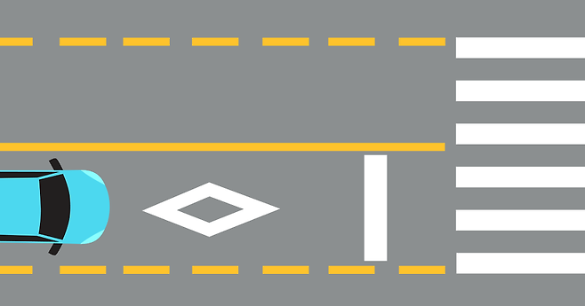 주로 보행자가 다니는 횡단보도 전방 50~60m 전에 이 마름모 표시를 그려 운전자에게 알려 미리 속도를 늦출 수 있도록 도와줍니다. 앞으로 이 마름모 표시가 보인다면 미리 속도를 낮춰 주변에 보행자는 없는지 살펴보시는게 좋겠죠!