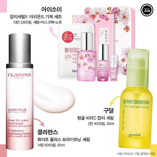 아이소이의 효자템 ‘잡티 세럼’이 최근 마리몬드 콜라보 한정판을 통해 화사한 복숭아꽃 패턴을 입었다. 보고만 있어도 봄봄한 패키지, 은은한 불가리안 로즈 향이 매력적이다.