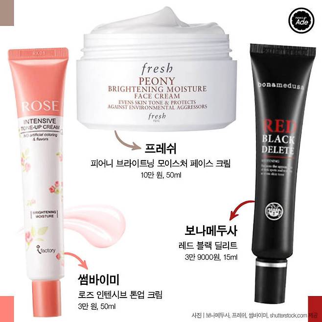 은은한 톤 업 효과로 일명 ‘쌩얼크림’이라 불리는 썸바이미의 ‘톤업 크림’도 추천한다. 얼굴은 물론 바디에도 묻어남 없이 자연스럽게 펴 발린다. ‘백옥주사’ 성분인 글루타치온 성분이 들어 있다.