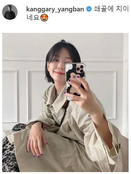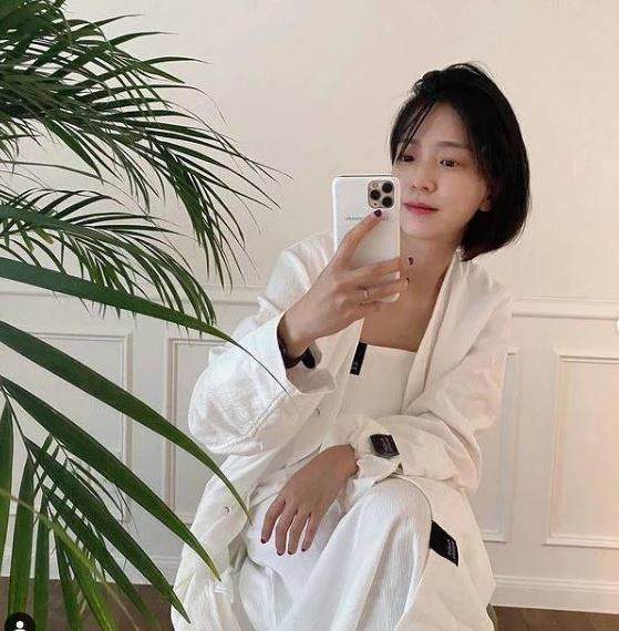 해당 사진에서 그는 하얀 홈웨어를 입고 의자에 걸터앉은 채 시크한 포즈를 취했다. 수수한 단발 헤어스타일과 함께 화장기 하나 없는 청초한 외모가 시선을 사로잡았다. 특히 피부 미인으로 유명한 배우 임수정을 연상케 해, 감탄을 자아냈다.