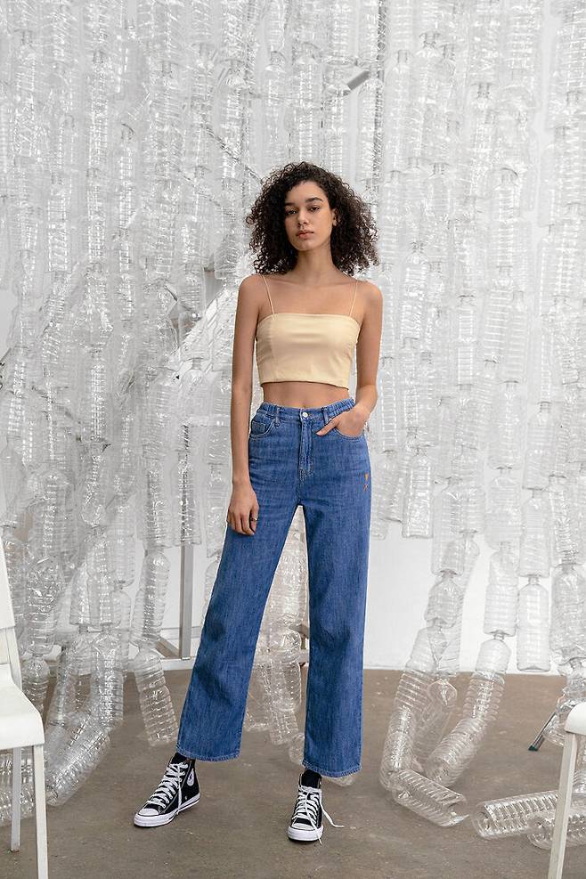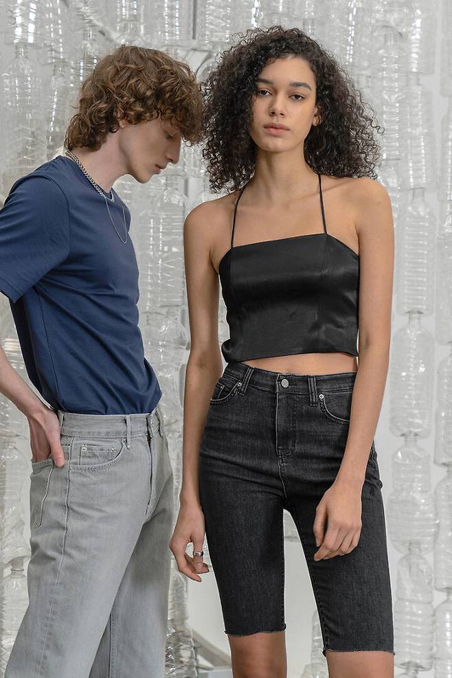 시그니처 라인의 바이커 팬츠는 폐플라스틱에서 추출한