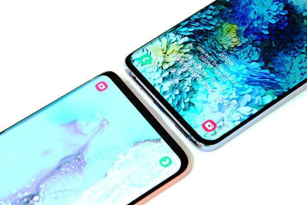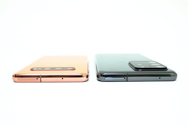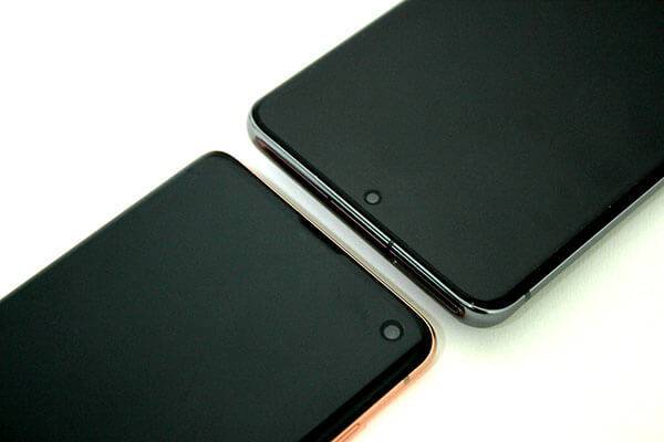 리시버(스피커)가 차지하는 영역도 좁아졌다. 전작인 갤럭시S10에서는 디스플레이 상단에 위치한 리시버를 어렵지 않게 찾을 수 있었지만, 갤럭시S20에서는 리시버가 디스플레이와 프레임 사이에 교묘하게 숨어 있어 자세히 보지 않으면 마치 리시버가 없는 것처럼 보인다. 아무래도 리시버가 눈에 띄지 않다보니 화면이 더 넓어진 듯한 느낌이다.