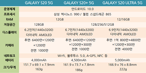 갤럭시S20 VS 갤럭시S20 플러스 VS 갤럭시S20 울트라, 무엇이 다를까