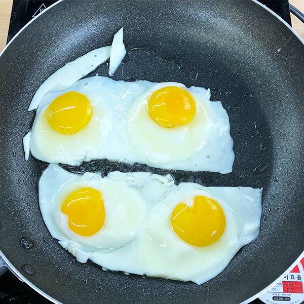 겨우겨우 익은 계란을 반으로 똑! 갈라주고!