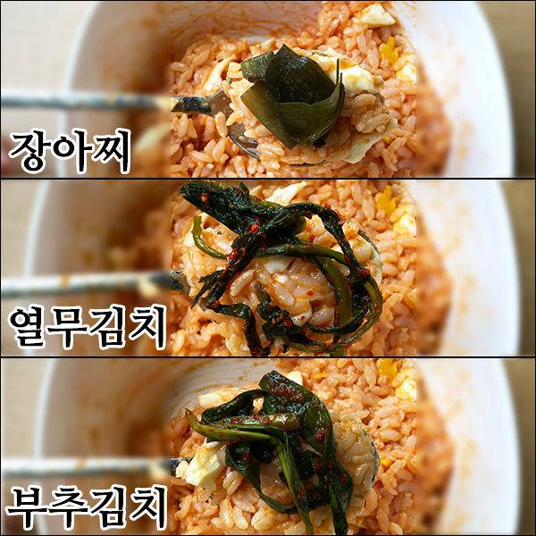 케찹 계란밥에도 반찬들을 얹어서 먹어봤는데
