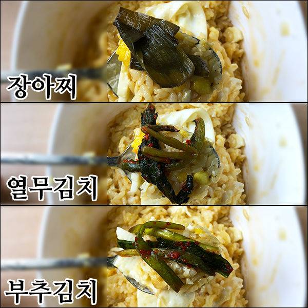 케찹 계란밥에도 반찬들을 얹어서 먹어봤는데