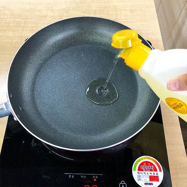 달궈진 팅팅탱탱 프라이뺀에 기름을 넣어주고