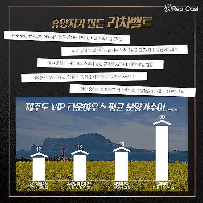 삶의 만족도와 힐링을 중시하는 부자들은 오래 전부터 힐링용 세컨하우스를 소유해 왔습니다. 게다가 세컨하우스는 매입과 양도가 쉽다는 경제성도 있어 부자들에게 더할 나위 없이 좋은 매물인데요. 실제 제주도, 여수 등 부자들이 선호하는 관광지에선 레저형 아파트나 풀빌라, 타운하우스 등 세컨하우스의 수요가 계속해서 증가하고 있는 추세입니다.