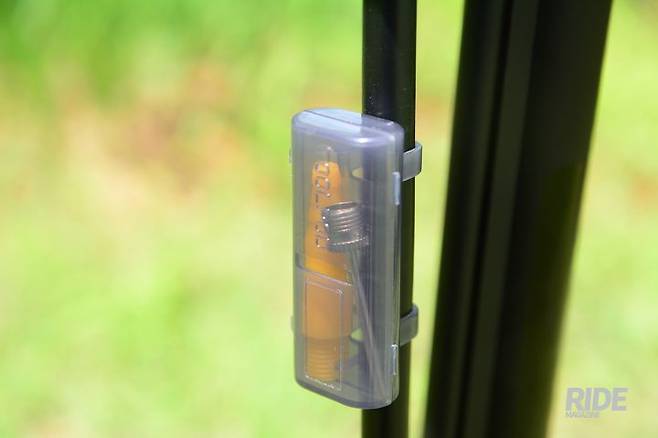 디지털 압력계를 장착한 것만으로도 훌륭하지만, FPD-200은 기존의 펌프에서 많은 부분을 개선했다. 가장 눈에 띄는 것은 핸들을 고정하는 고리이다. 핸들을 잡아서 편하게 펌프를 운반할 수 있다. 대부분의 제품이 실린더를 잡고 운반해야 하는 것을 생각하면 이는 큰 장점이다.