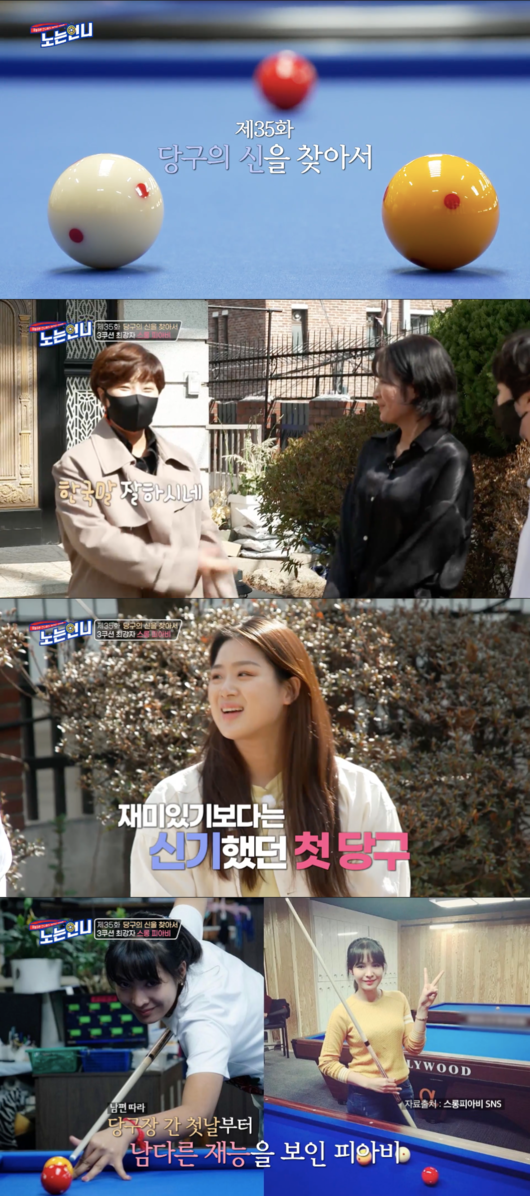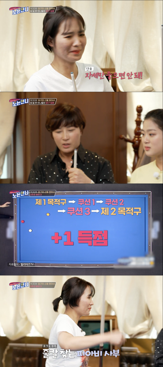 30일 방송된 티캐스트 E채널 ‘노는 언니’에 실내무도아시안게임 금메달리스트인 당구 선수 차유람과 KBF(대한당구연맹) 1위, UMB(세계당구연맹) 2위에 랭크 돼 있는 3쿠션의 최강자 스롱 피아비가 사부로 출격했다.
