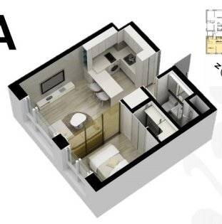 저희 집 도면입니다. 방 하나(붙박이 드레스룸), 거실, 주방, 화장실이 알찬 구조로 들어있는 1.5룸이에요. 신축 오피스텔의 첫 입주라 리모델링은 따로 진행하지 않았고 화이트&우드 느낌으로 스타일링만 했어요.