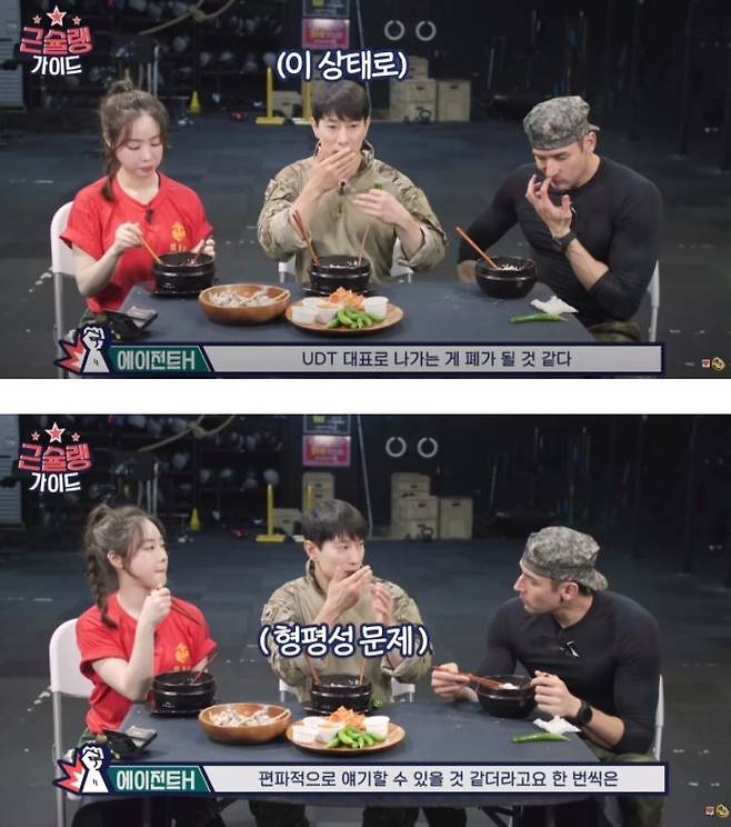 우선 에이전트H는 "사실 '강철부대' 섭외가 (제게) 오긴 했었다"며 "나가서 하고 싶었는데 그때 허리도 계속 안 좋고 일단은 고사를 하게 됐다"고 털어놨다. 에이전트H는 "UDT 후배 중에서 네 명 다 (김범석, 육준서, 김상욱, 정종현) 훌륭하신 분들"이라고 칭찬했다.
