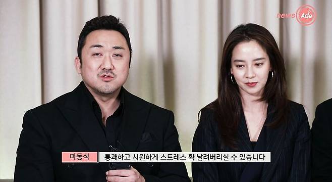 "저희 '성난 황소' 보시면 통쾌하고 시원하게 스트레스를 확 날려버리실 수 있습니다." (마동석)