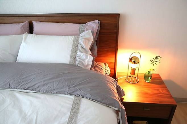지금까지 가장 만족도가 높은 방이에요! 깔끔한 침대 프레임, 월넛톤으로 다 맞춰 산 건 정말 신의 한 수였던 것 같아요 ㅎㅎ 덕분에 안방 분위기도 깔끔하게 잡혔고요.