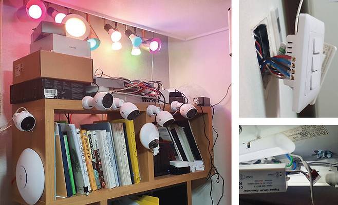 김 스마트홈은 살면서 계속 진화해간다. 그래서 ‘현재 어떠한 물리적 환경을 반드시 구축해야 하는가’라는 문제에 집중했다. 네트워크 장비는 모세혈관에 해당하는 만큼, 스마트 플랫폼이 섬세하고 정교하게 안정적으로 운영되도록 네트워크 구성에 가장 많이 공들였다. 네트워크 기기는 주택 전체를 빈틈없이 하나의 Mesh WiFi 망으로 묶기 위해 라우터, 스위칭 허브, 무선 AP를 각각 구입해 결합하는 미국 ‘UniFi’ 제품을 사용했다. 그리고 이 분야 전문가도 아니고 공유기만 사용해봤기 때문에, 네트워크 장비를 이해하는 과정이 가장 어려웠다.