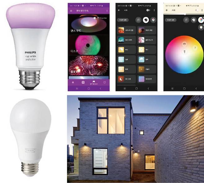 1600만 가지 색을 표현하는 스마트 조명은 색과 조도를 환경에 맞춰 제어하거나 소리에 따라 동적으로 연출해 필요에 따라 다양한 환경을 만들 수 있다.